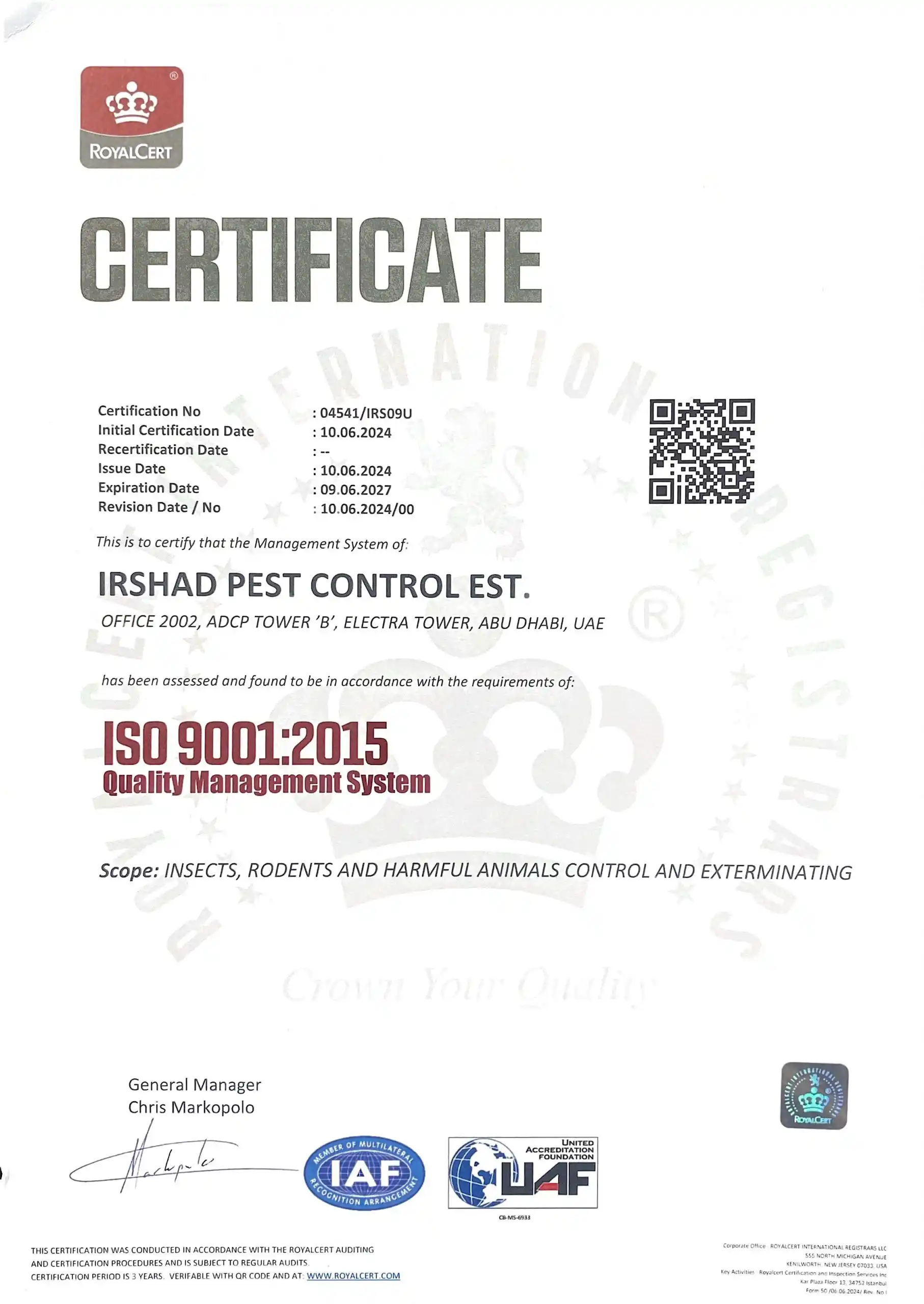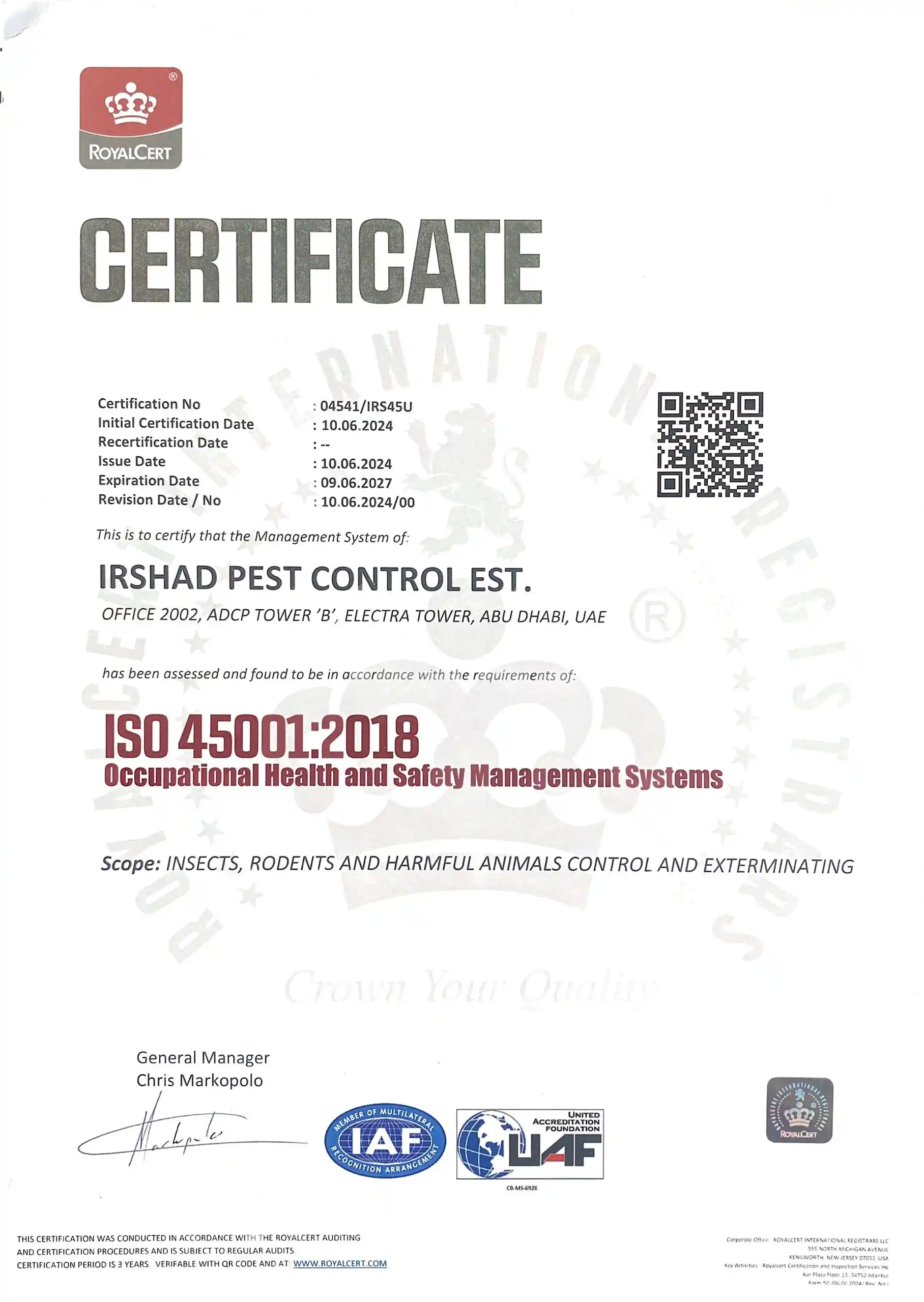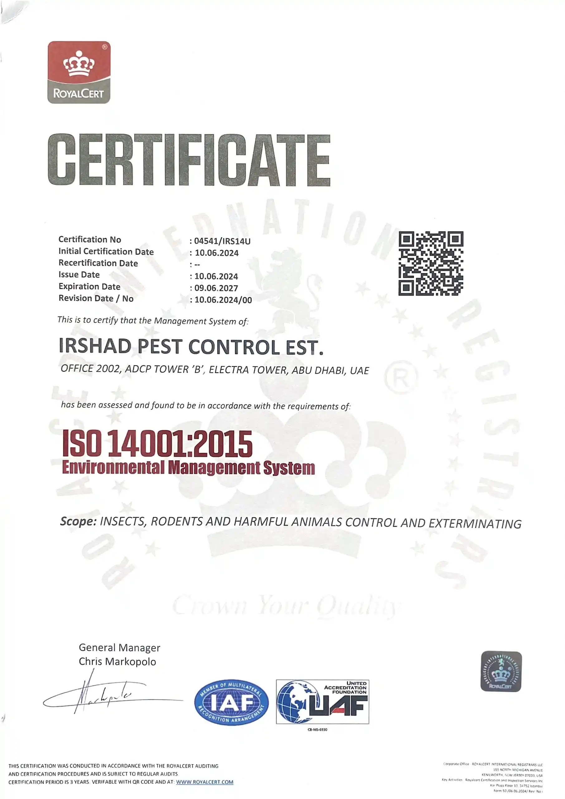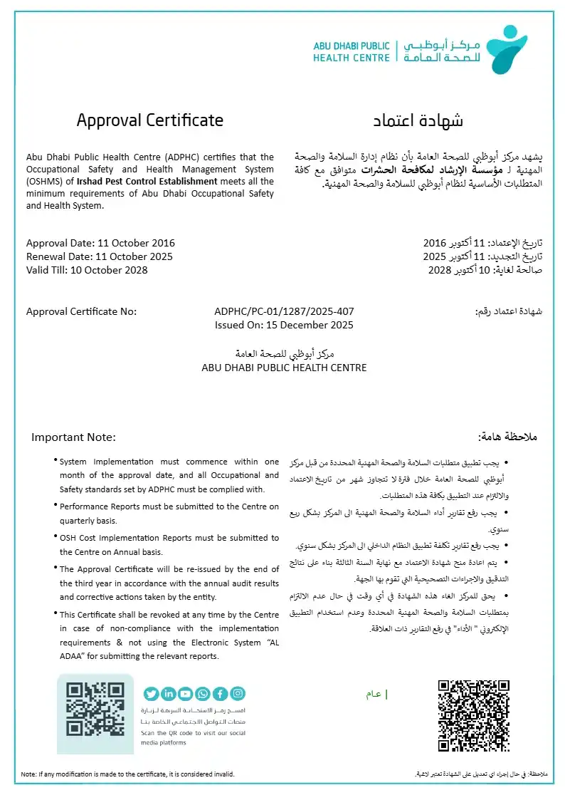 Irshad Group brings proven experience working with UAE Government Entities, operating as a fully Licensed, Certified, and Regulatory-Compliant Organization. Our integrated services are delivered under one trusted Group, with a strong focus on Public health, Safety, and Sustainability, Supported by Experienced teams and Modern equipment to ensure Consistent and Reliable results.