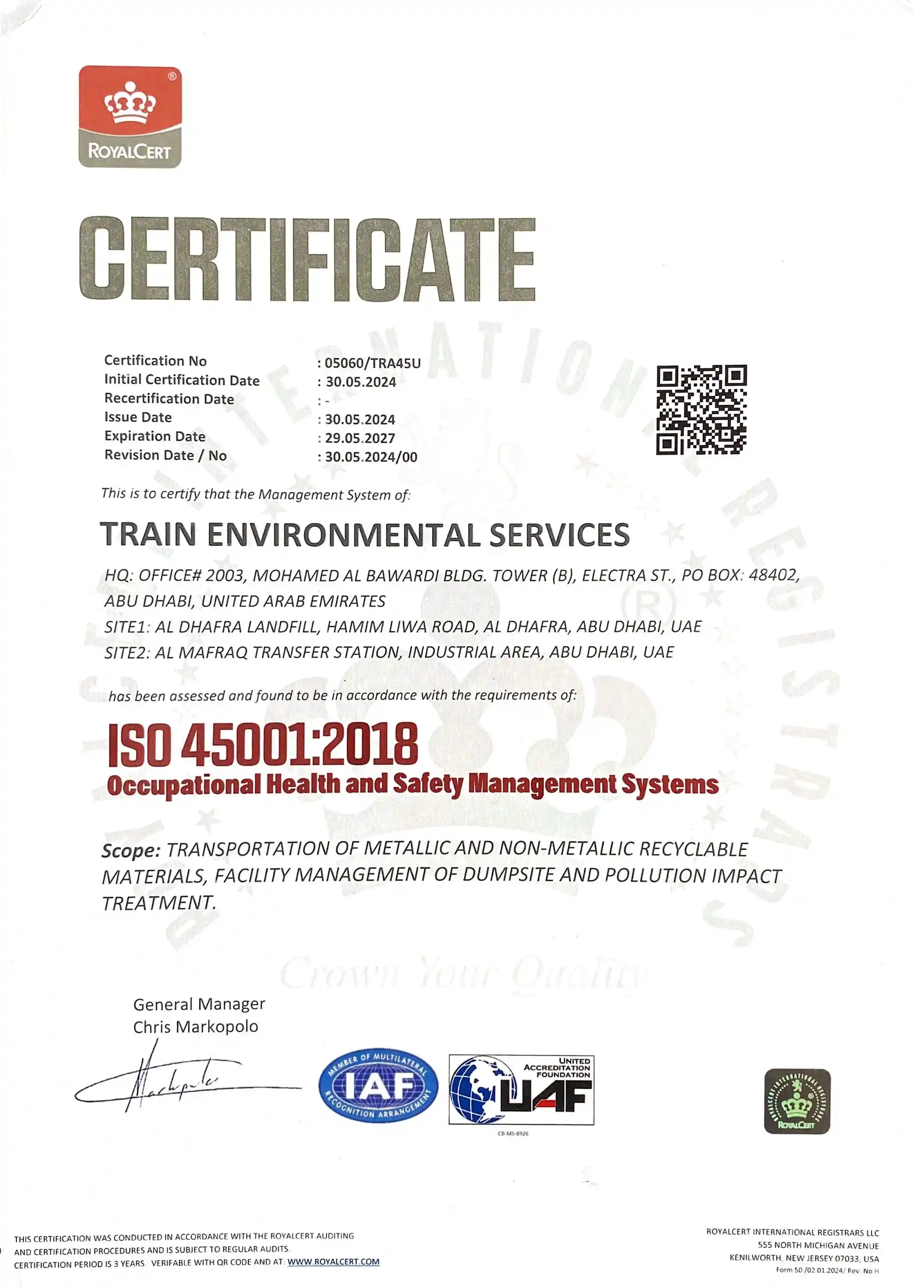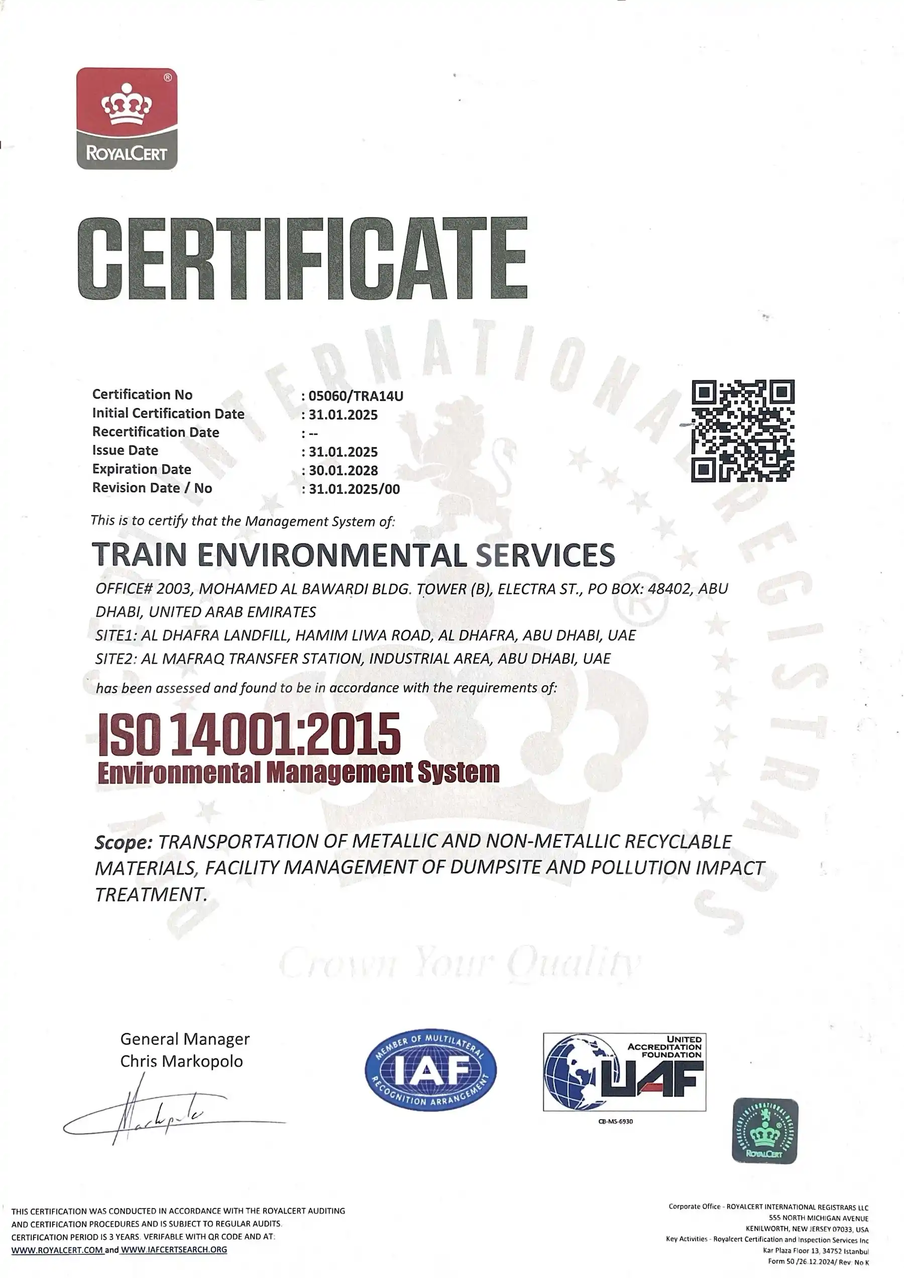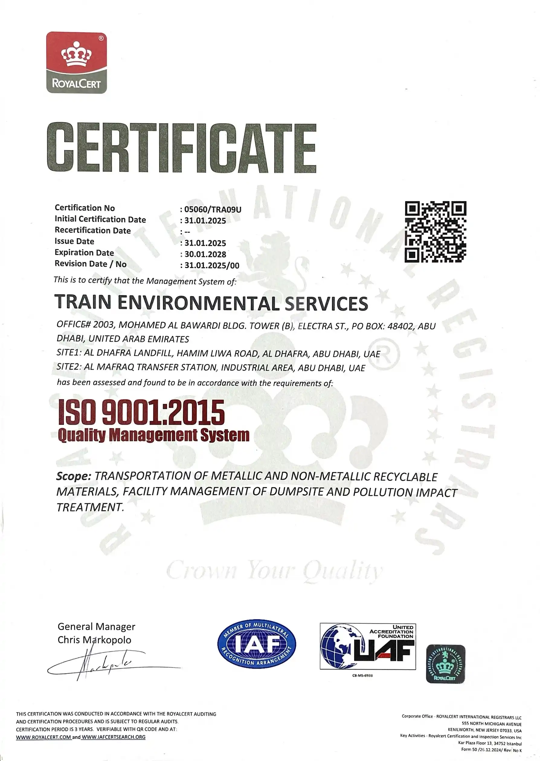 Our work is driven by a Clear purpose: Protecting Public health, Preserving the Environment, and Delivering long-term value to the Communities we serve. ICV Certified with Excellent Score and Registered with ADNOC.